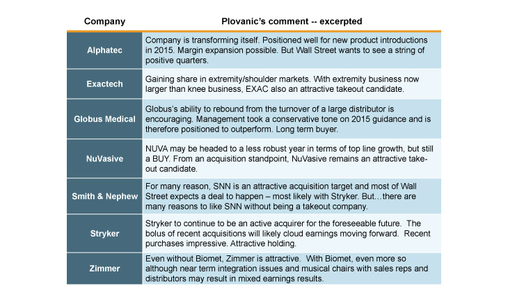 In the words of top gun orthopedic industry analyst Bill Plovanic of Cannacord Genuity, the signs are in place for better growth rates and, for investors, “long term opportunities within orthopedics…and [we] believe the industry will continue to evolve and offer investors ample opportunities for capital gains…”
