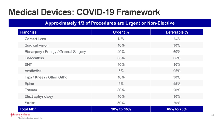 The practical impact of that, according to JNJ, is that deferable procedures are likely to decline for the second quarter, three months ended June 30, by 65-85%.